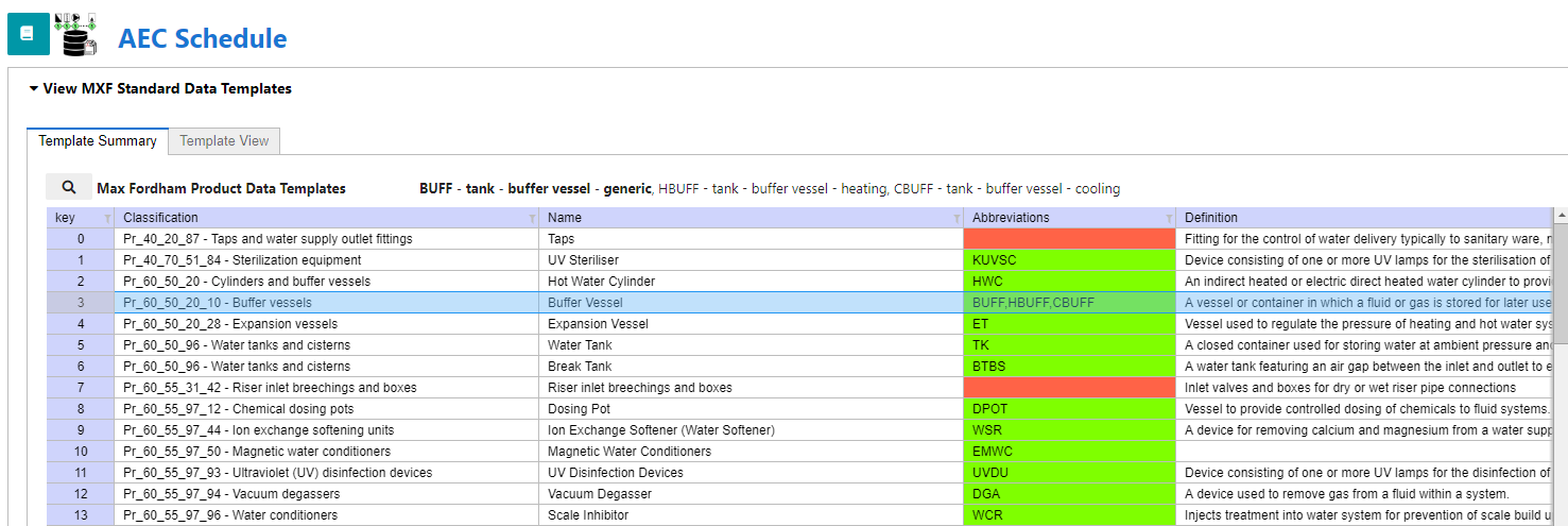 We have extended the IFC classes to satisfy all scheduling needs. Sometimes that means a new class, sometimes that means extending an IFC class with extra properties. Classes (/Templates) are given default BDNS abbreviations.